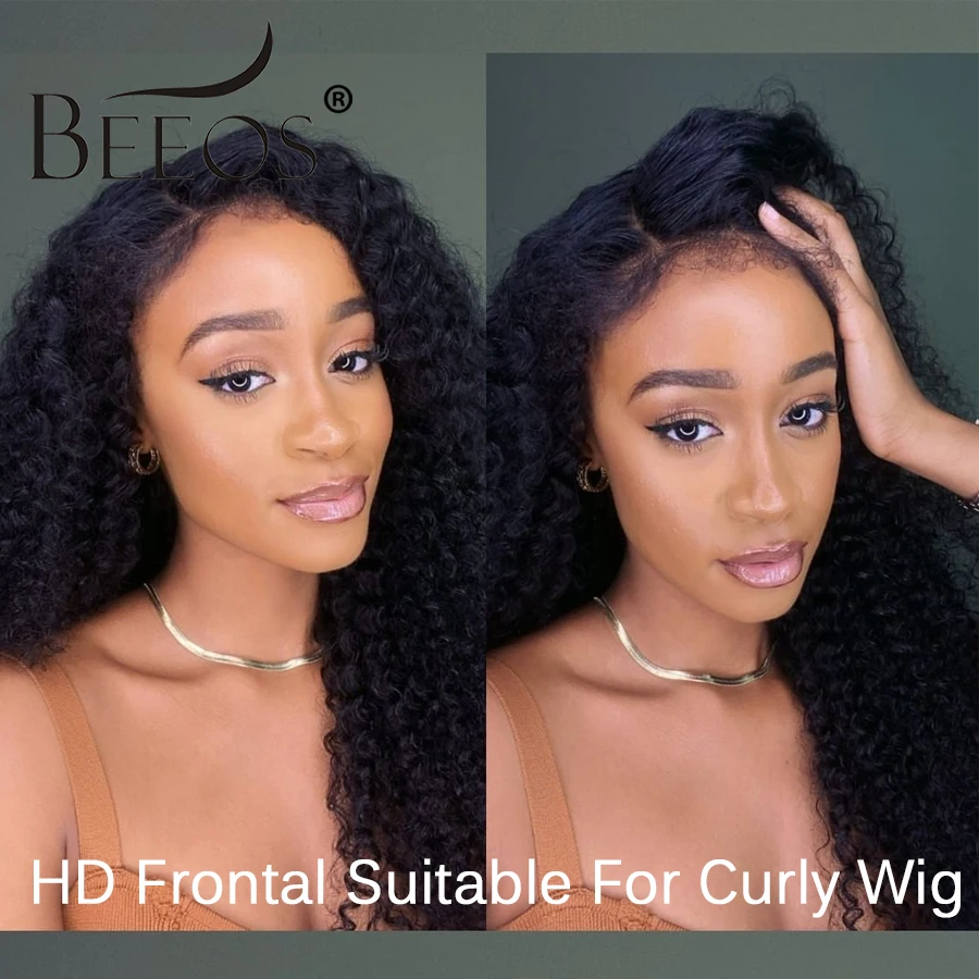 Curly Baby Hair 13x6 HD Lace Frontal Only Pre plucked Kinky Edge Hairline HD Transparent Lace Brazilian Human Hair Water Wave