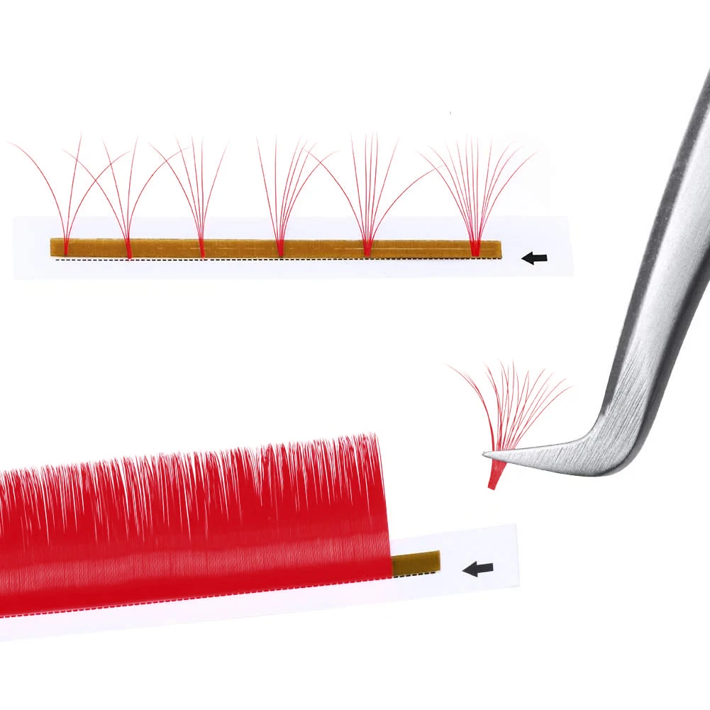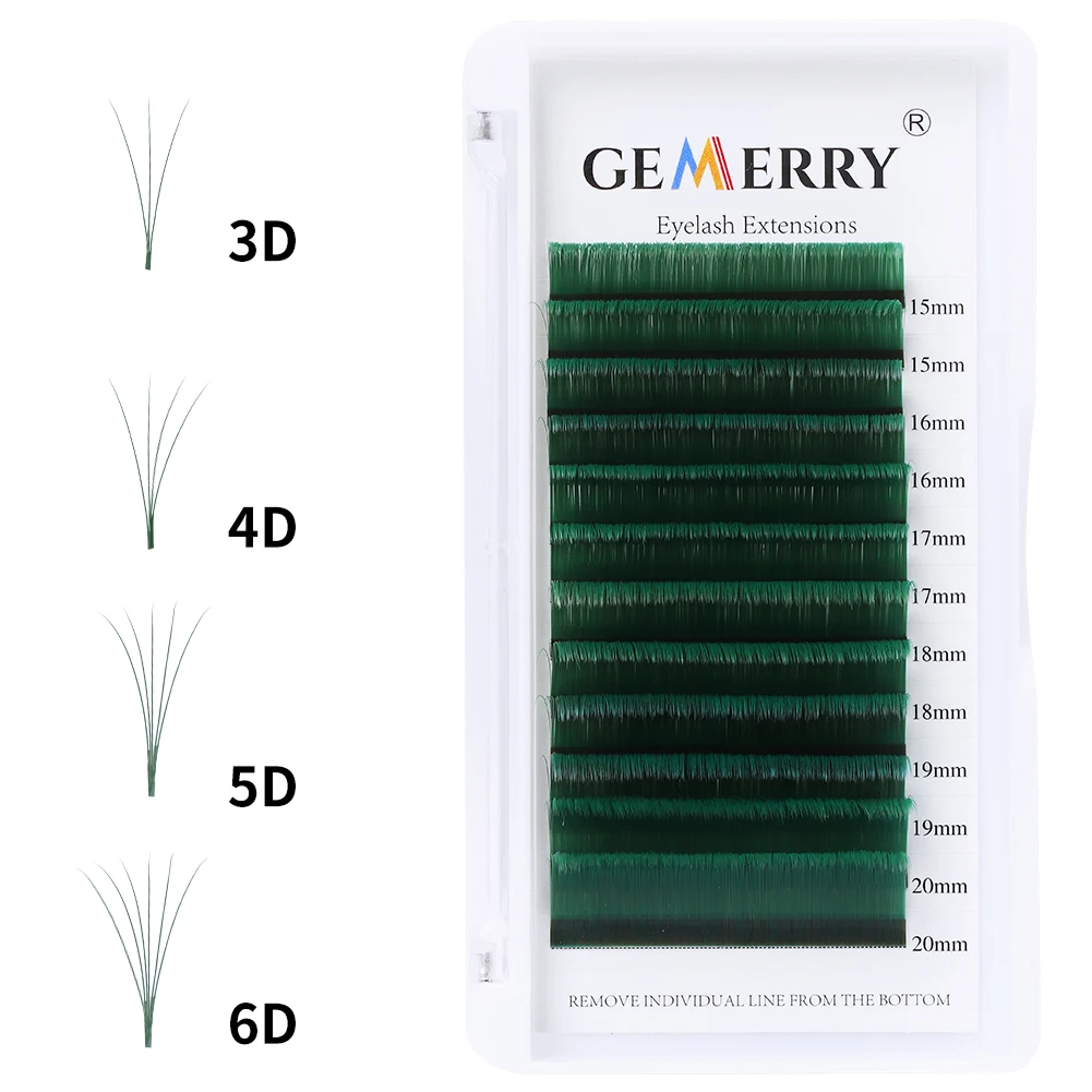1.GEMERRY colored easy fan lashes 0.07mm: We can provide volume eyelash extensions, you can self fanning 2D-20D, we can provide 6 different colors for you to match, green/blue/pink/purple/brown/red.