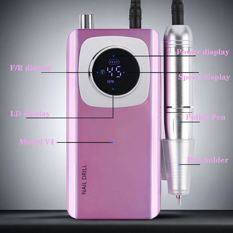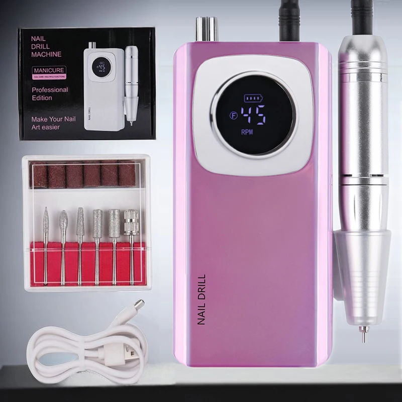 High Speed 45000RPM Rechargeable Nail Drill Machine with LCD Low Noise Professional Nail Polish Sander Nails Accessories Set