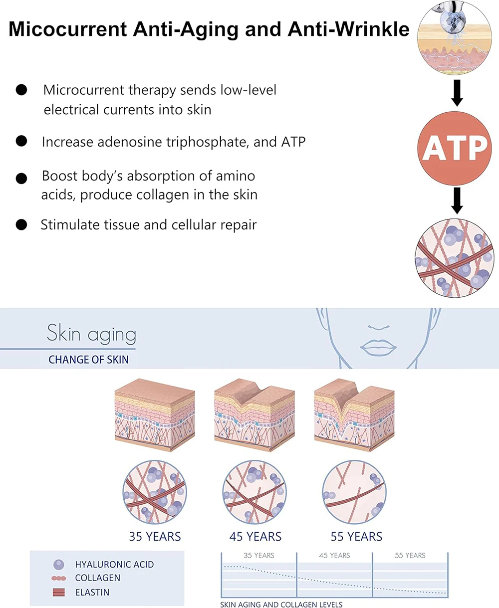 Effective micro current pulse technique: aim at dredge channels and acupoint, lymphatic drainage, and produces micro waves stimulate deeply into the subcutis and muscles to repair skin elastic fiber, glial tissue, and reduce fine lines and wrinkles.