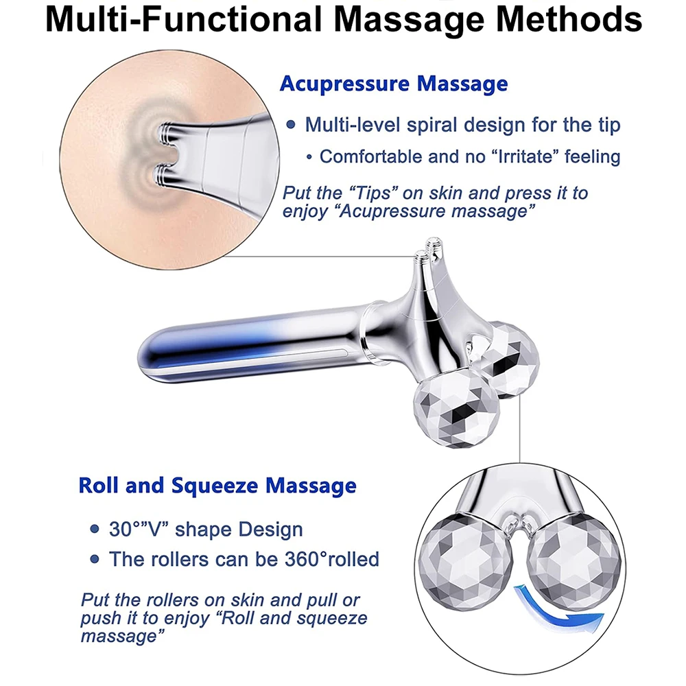 Two Y-shaped 360° rotating massage roller design: adapt to the whole body massage, such as face, chin, neck, chest, abdomen, waist, arm and legs, and has a unique slimming effect.