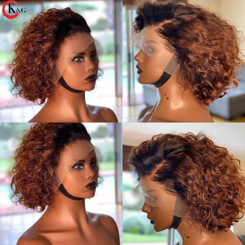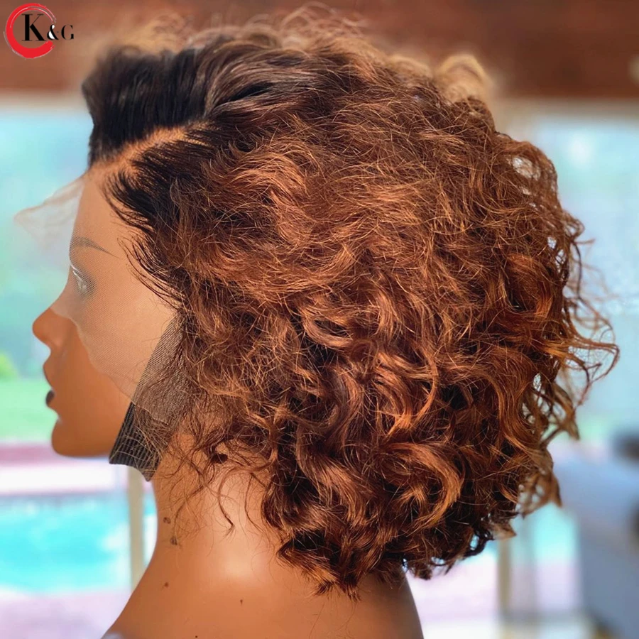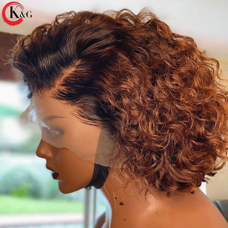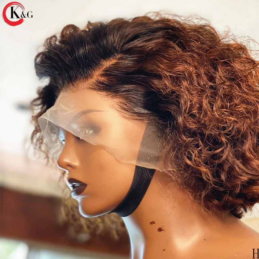 KUNGANG Pixie Cut perruque 13*4 bouclés dentelle avant perruques de cheveux humains rapport moyen dentelle perruque 150% 180% densité non-remy cheveux