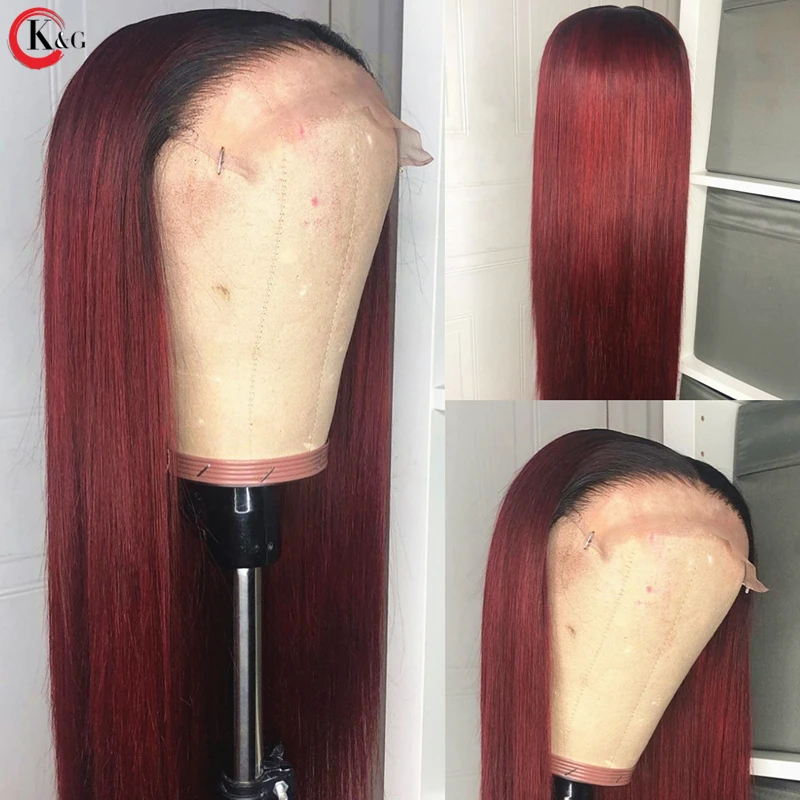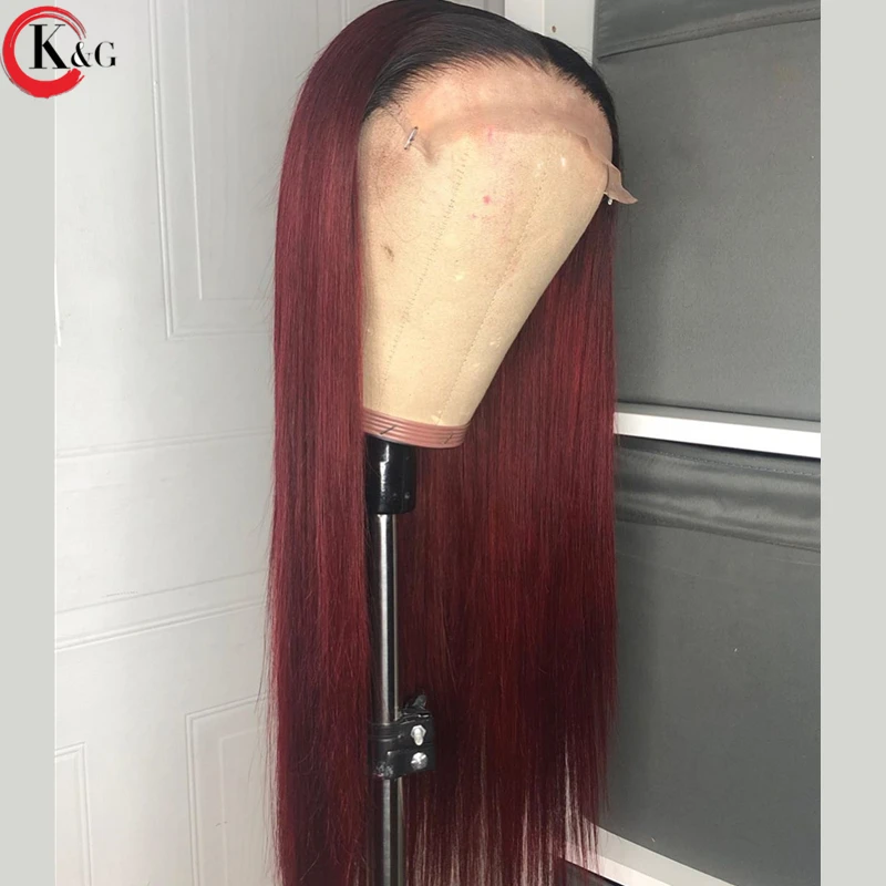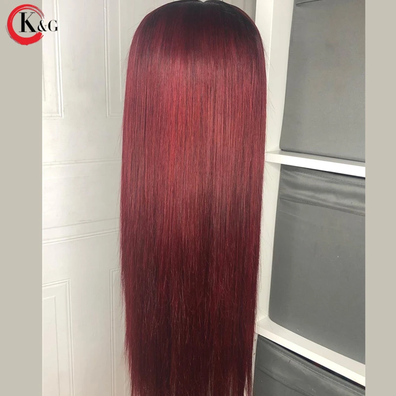 KungGang 13*4 dentelle avant cheveux humains 8 "-22" T1B-99j perruques avec des cheveux de bébé brésilien rapport moyen non-remy dentelle Wigs130 150 densité