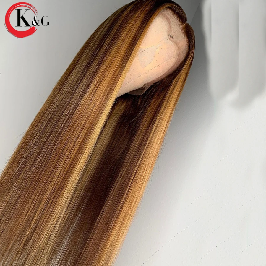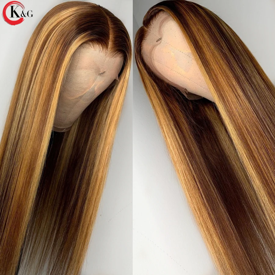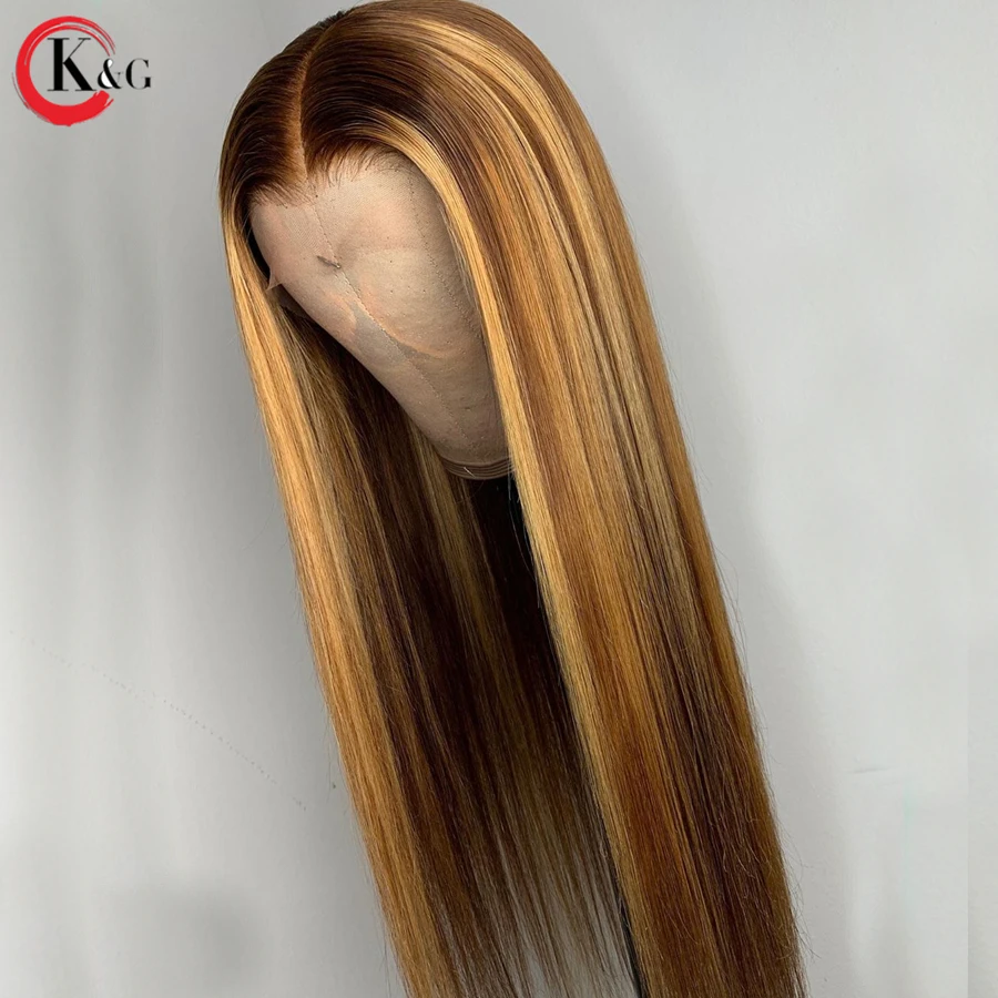 KungGang – perruque Lace Front wig non-remy brésilienne non-remy, cheveux naturels, à reflets profonds, 13x4, 13x6, avec Baby Hair, 8 à 24 pouces, Ratio moyen
