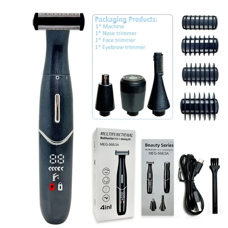 (1 x T-shaped cutter head, 1 x eyebrow trimmer, 1 x nose hair cutter, 1 x 0mm cutter head)