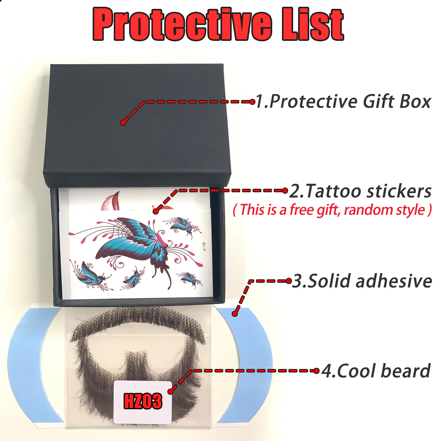A Handmade Beard With Human Hair For Man Mustache Makeup for Film and Television Makeup Synthetic Fake Hair Cosplay Party Tools