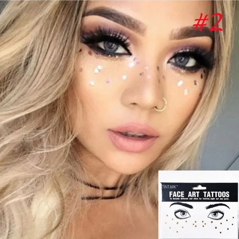 1pcs Flash Tattoo Waterproof Stars Choker Pattern Freckles Gold Face Tattoo Sticker Eye Decals Bride Tribe Girl Party Body Art