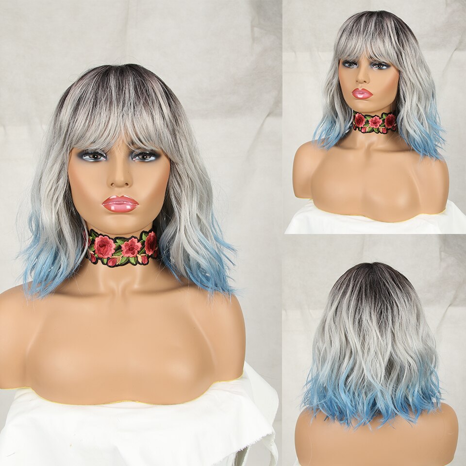 12" Synthetic Wig Blonde Pink Blue Hair BOB Wig with Bangs