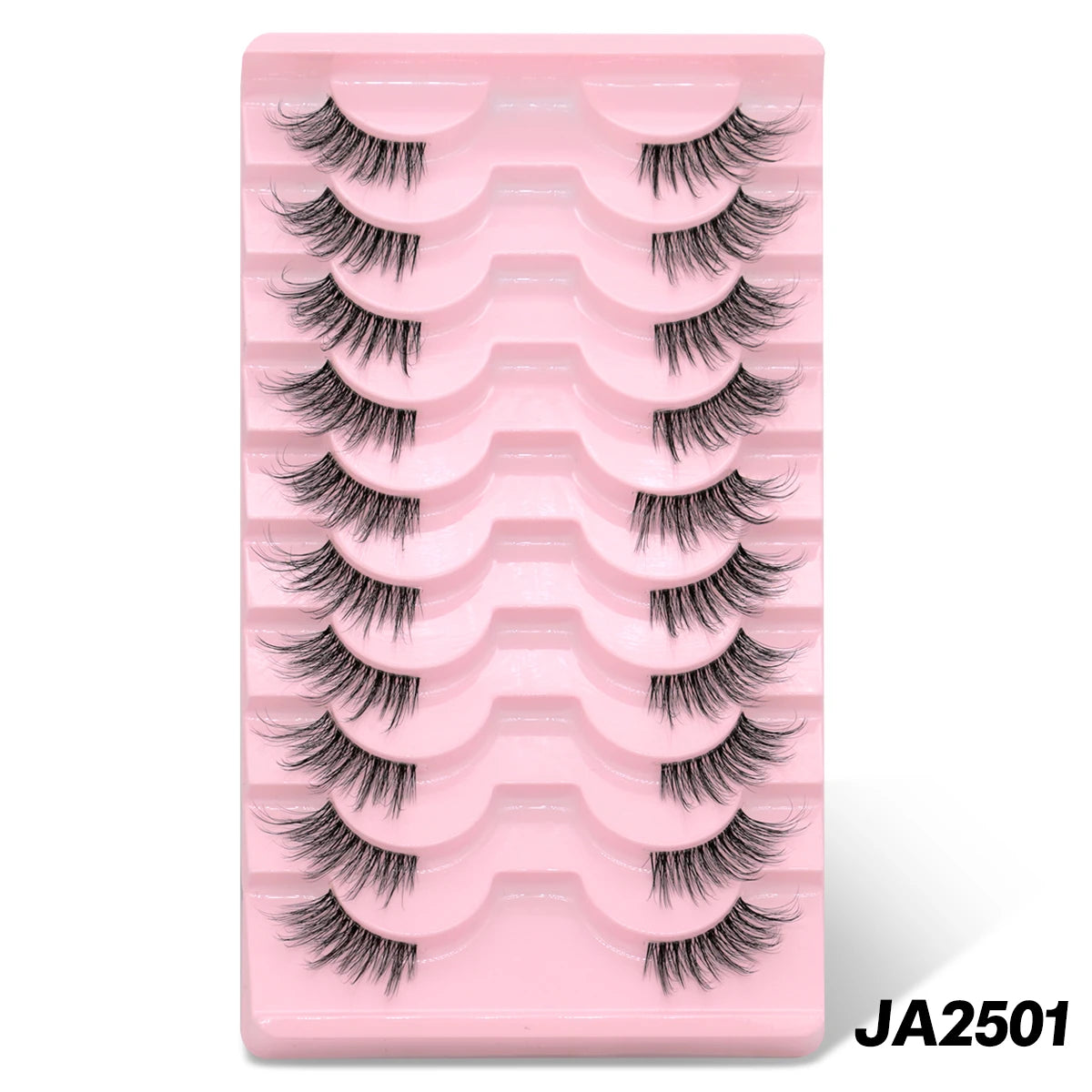 GROINNEYA Half Eye Lashes 5/10 Pairs False Eyelashes Natural Faux Mink Lashes Cat Eye Lashes Wispy Fluffy Eyelash Extension