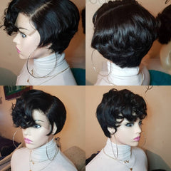 Pixie Cut Short Wig 13x6 Lace Front Human Hair Short Bob Wigs Natural Black Glueless Wavy Curly For Women Brazilian Remy Hair